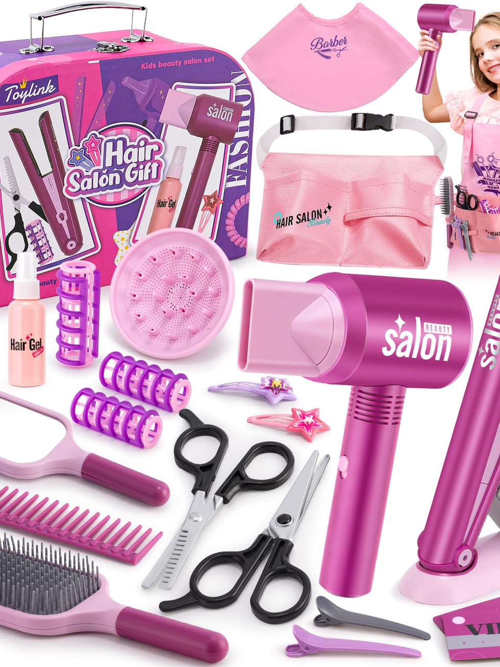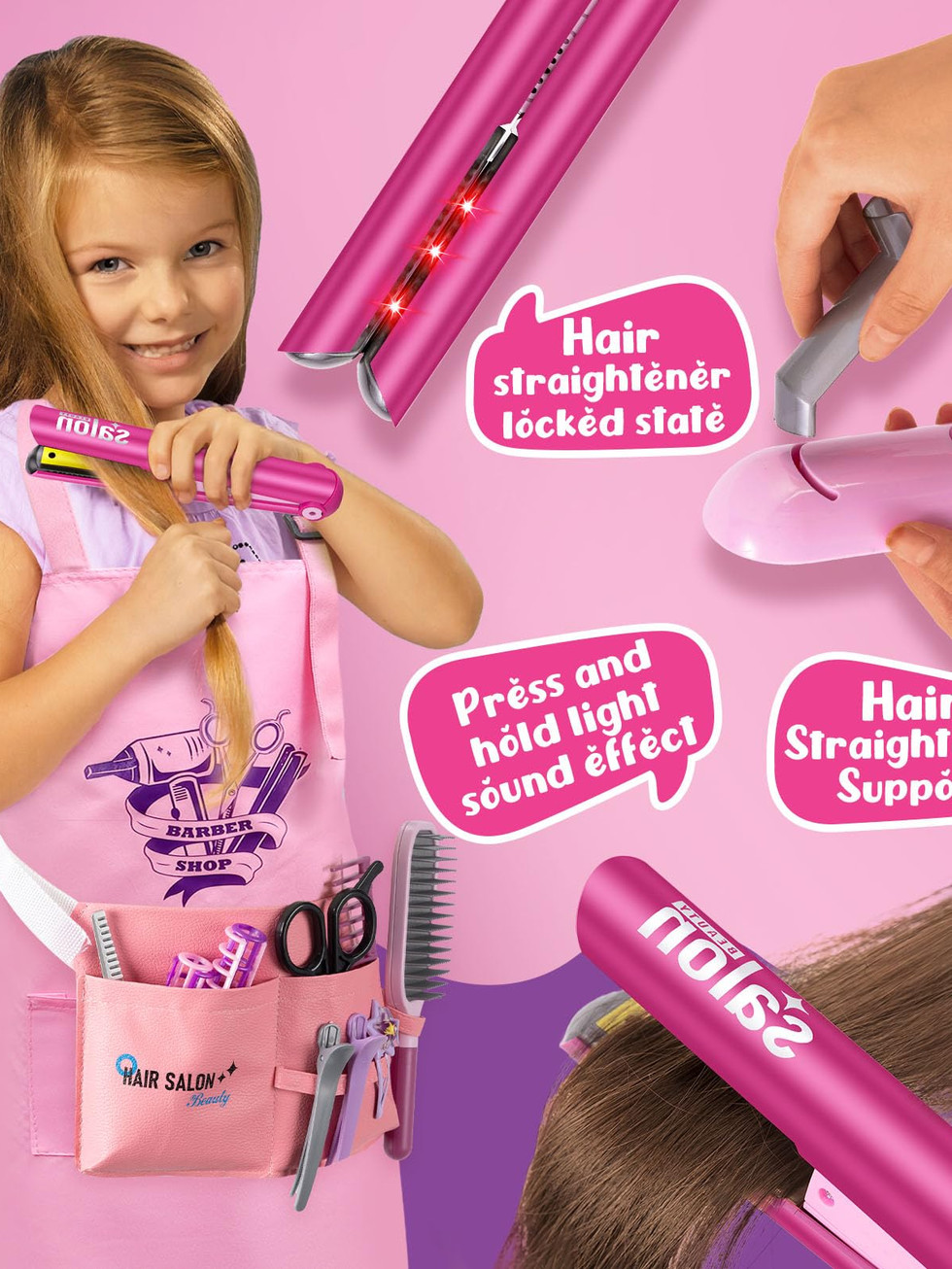 - HAIR STRAIGHTENER & STORAGE BOX: Our hair straighteners allow girls to pretend to design any look they want, elegant straight hair and playful curls are a girl favorite! We also come with a stand to simulate a more realistic hairdressing scene! In addition, we have carefully designed a portable storage box that can hold all the accessories, so that girls can easily bring their hair tools to play with friends, become a hair stylist, and show their creativity and talent
